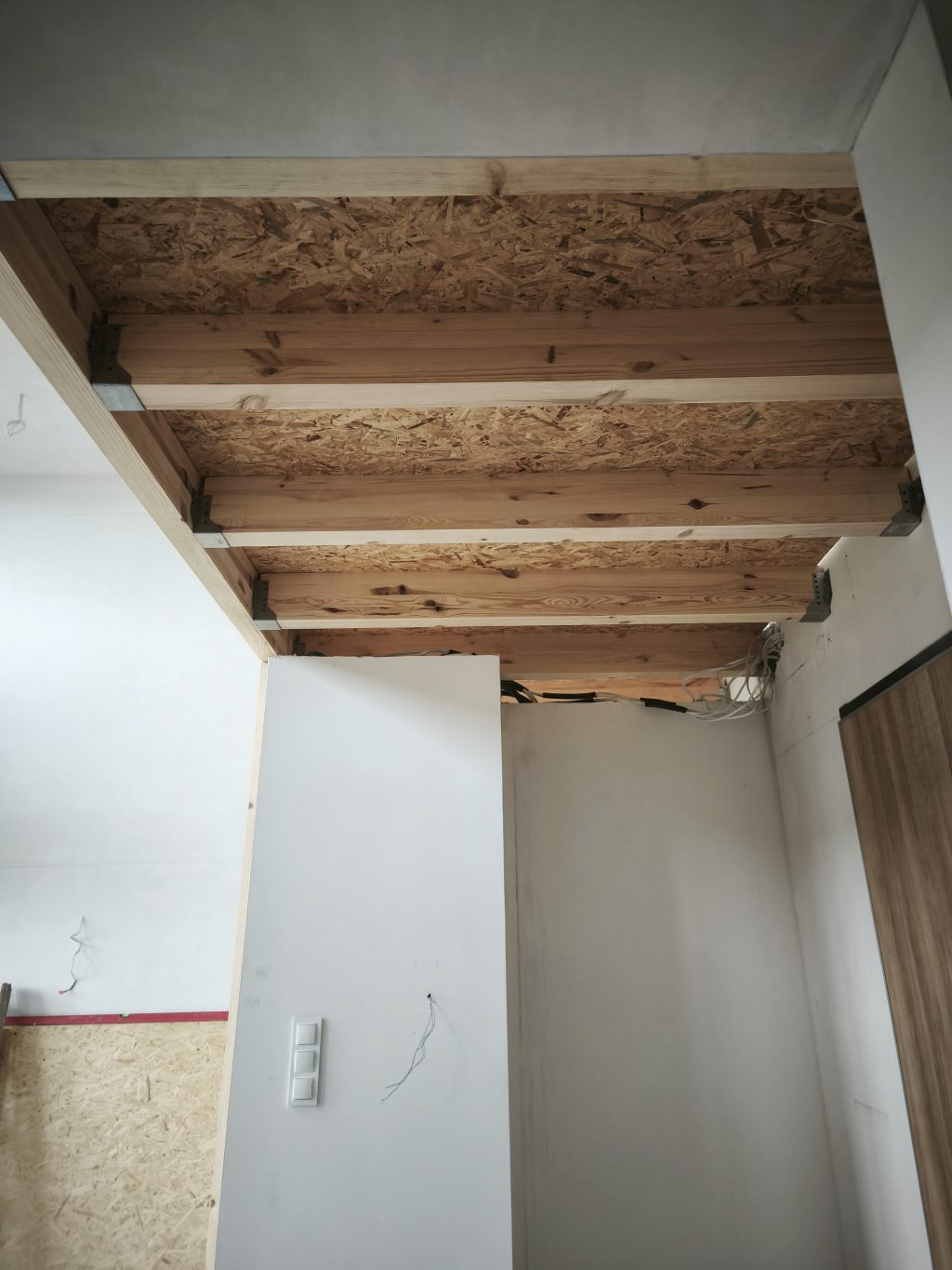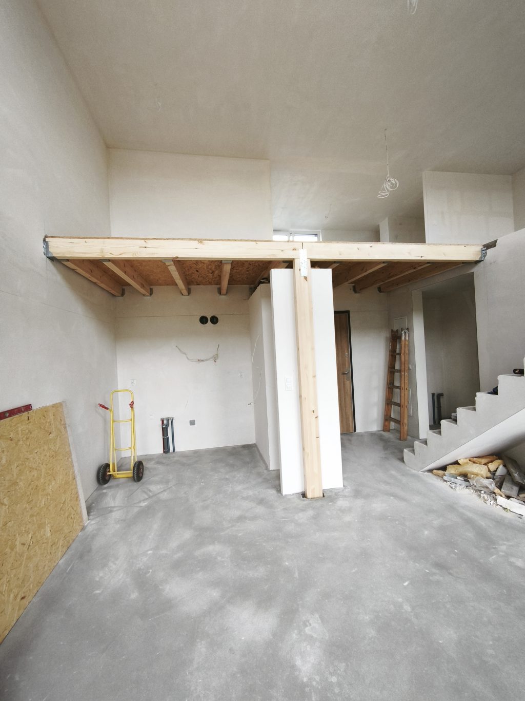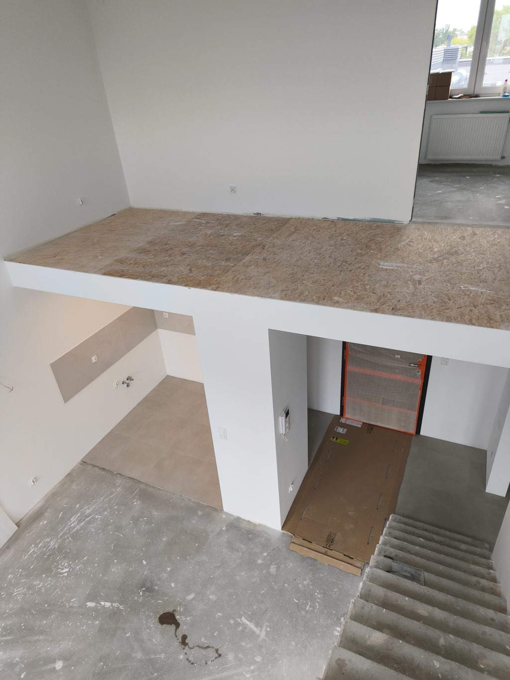 Galeria pokazuje realizację antresoli w mieszkaniu w bloku wykonaną przez naszą firmę w Warszawie i okolicach. Konstrukcja drewniana powstała nad kuchnią i korytarzem, co pozwoliło maksymalnie wykorzystać wysoką przestrzeń i stworzyć dodatkową strefę do pracy oraz spania. Antresola została wykonana na solidnej konstrukcji, wspartej na słupie podporowym. Podłogę wygłuszyliśmy płytą OSB, aby poprawić komfort użytkowania. Pod antresolą wydzieliliśmy aneks kuchenny oraz zabudowę z miejscem na szafę i lodówkę, oddzieloną od strefy wejściowej. Projekt pokazuje, że nawet w bloku można zwiększyć funkcjonalność mieszkania i stworzyć wygodne miejsce do pracy w domu. Antresola to praktyczny sposób na powiększenie przestrzeni i podniesienie wartości nieruchomości.