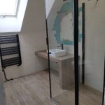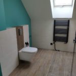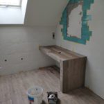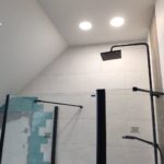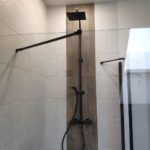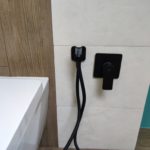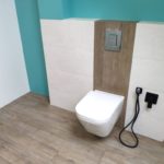 Galeria pokazuje realizację łazienki młodzieżowej na poddaszu wykonaną przez naszą firmę w Warszawie i okolicach. W projekcie połączyliśmy rustykalne płytki na ścianach z terakotą drewnopodobną na podłodze, co nadaje wnętrzu ciepły i nowoczesny charakter. W łazience wykonaliśmy prysznic z odpływem liniowym, blat pod umywalkę oraz zabudowę WC podwieszanego z bidetką. Czarne baterie i kabina prysznicowa podkreślają styl i dodają wnętrzu wyrazistości. Planujesz remont łazienki na poddaszu lub aranżację dla nastolatka? Skontaktuj się z nami. Doradzimy materiały i przygotujemy bezpłatną wycenę.