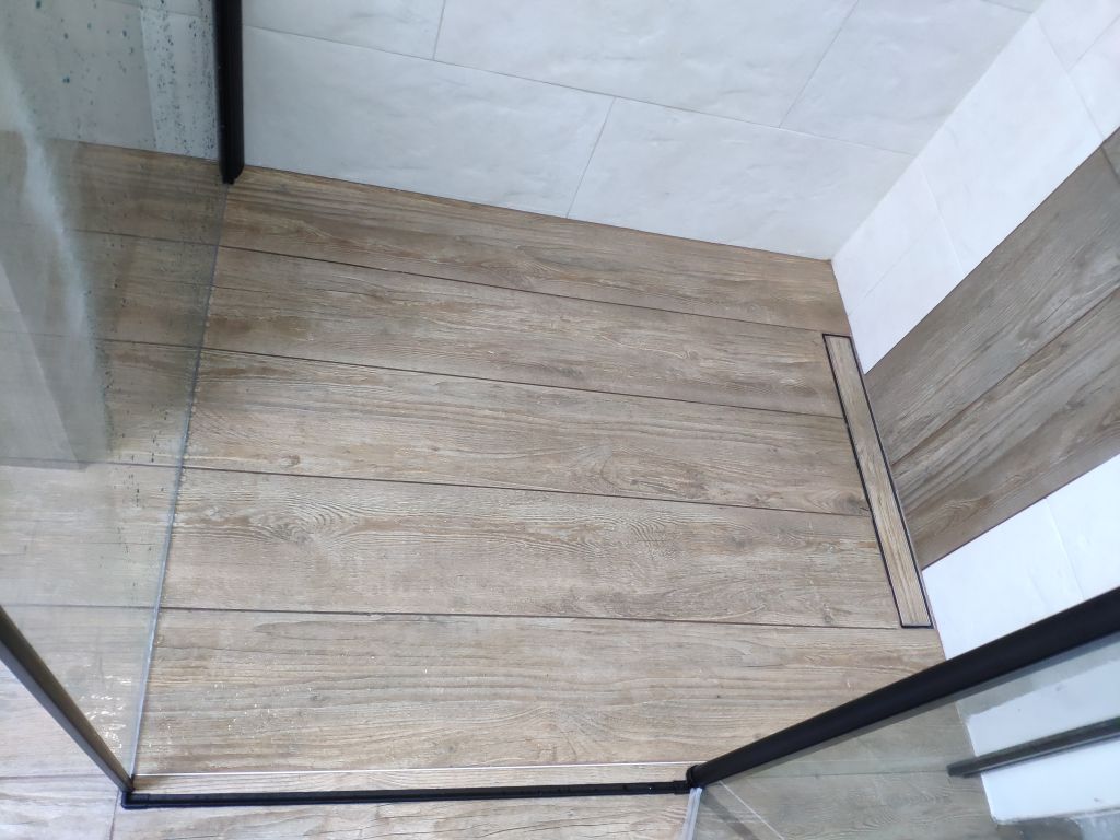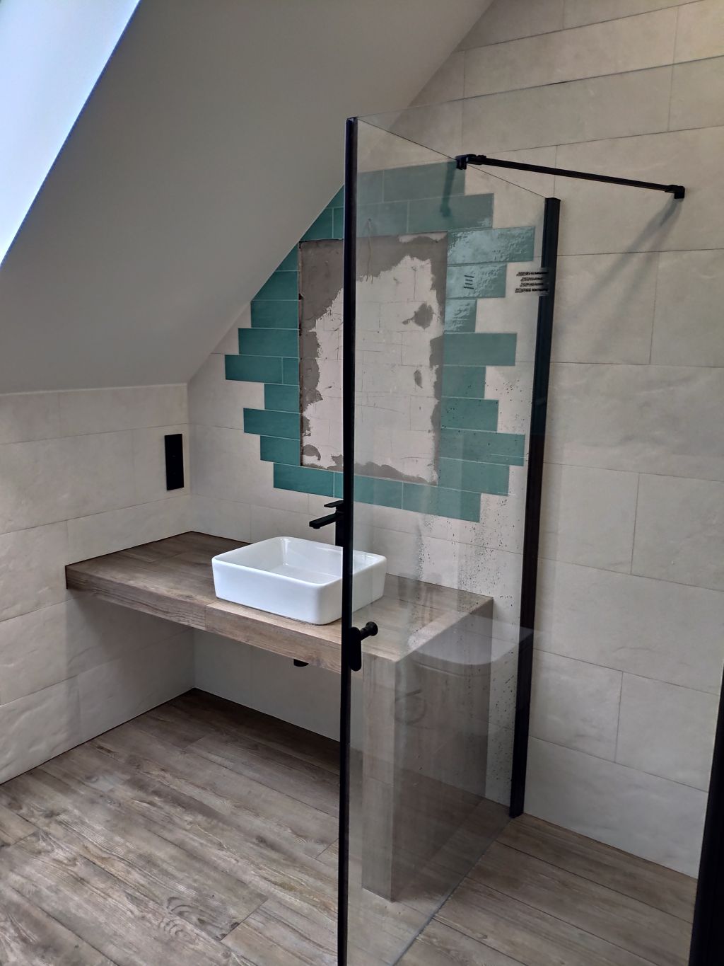 Galeria pokazuje realizację łazienki młodzieżowej na poddaszu wykonaną przez naszą firmę w Warszawie i okolicach. W projekcie połączyliśmy rustykalne płytki na ścianach z terakotą drewnopodobną na podłodze, co nadaje wnętrzu ciepły i nowoczesny charakter. W łazience wykonaliśmy prysznic z odpływem liniowym, blat pod umywalkę oraz zabudowę WC podwieszanego z bidetką. Czarne baterie i kabina prysznicowa podkreślają styl i dodają wnętrzu wyrazistości. Planujesz remont łazienki na poddaszu lub aranżację dla nastolatka? Skontaktuj się z nami. Doradzimy materiały i przygotujemy bezpłatną wycenę.